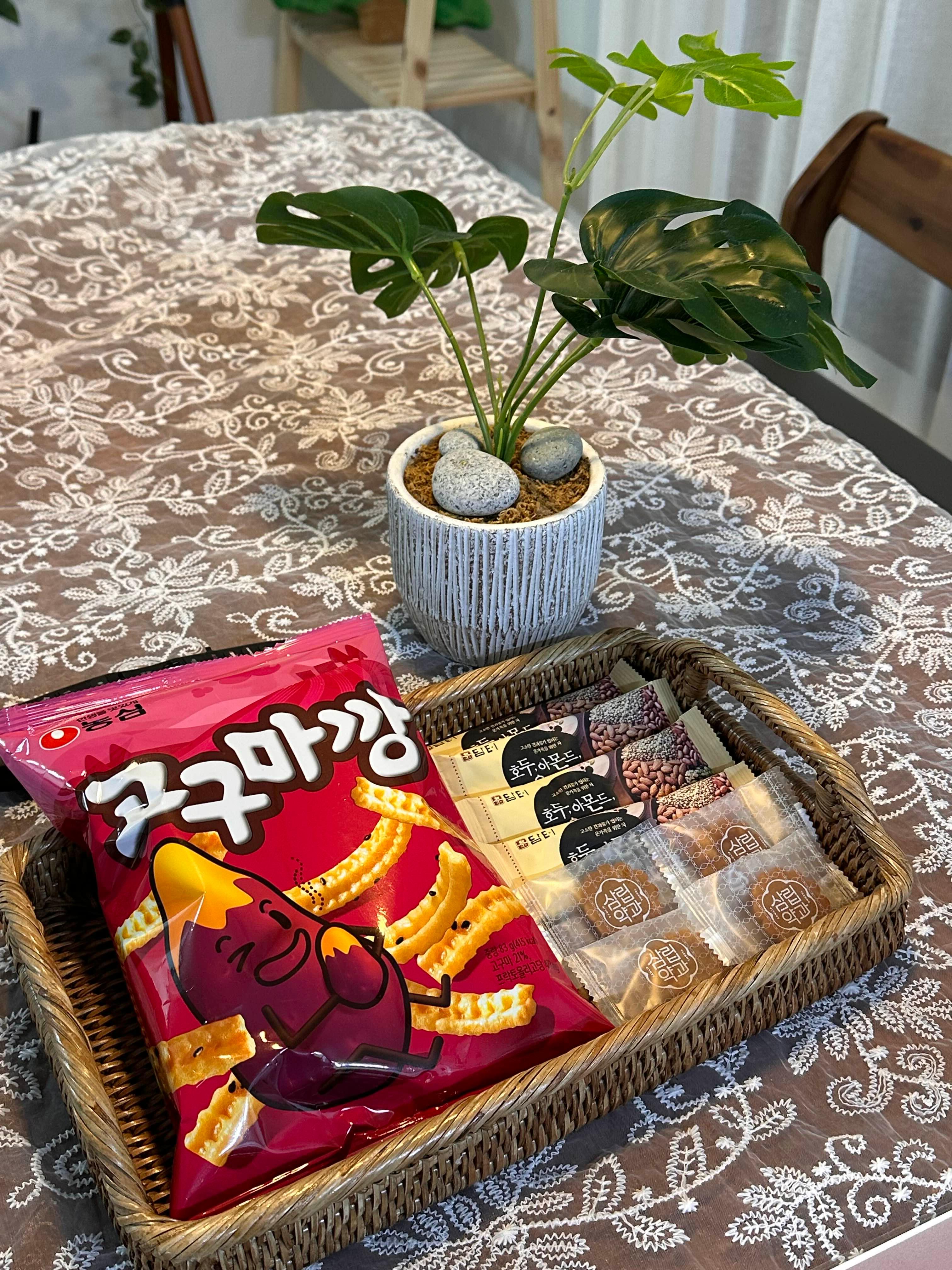웰컴 간식과 주의 사항 안내문이 있엇어요