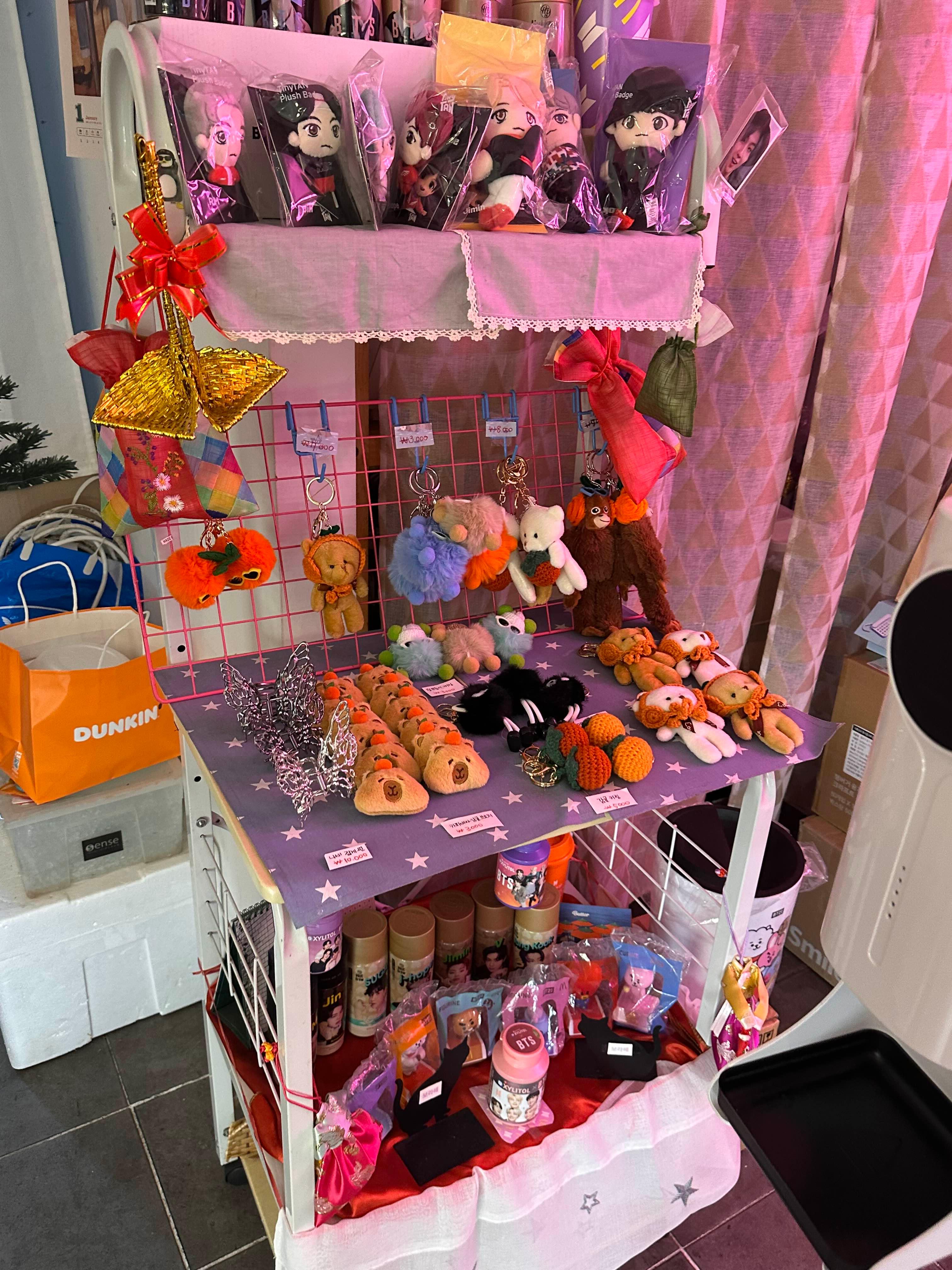 키링과 인형 뀩 참았어요